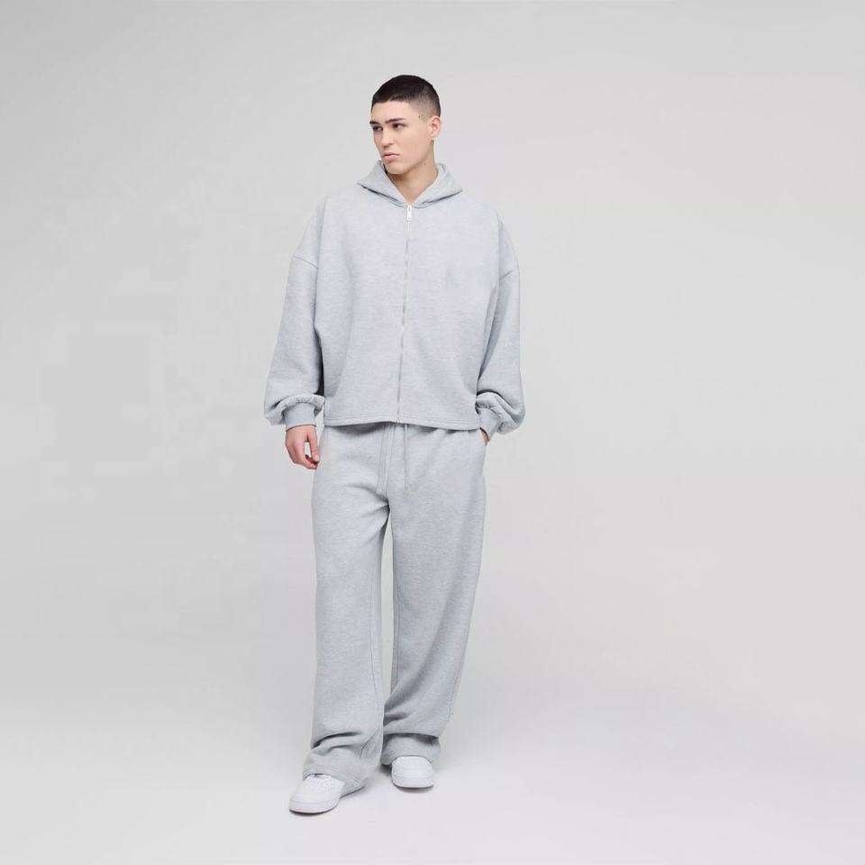 ชุดวอร์มผู้ชายแบบมีซิป เสื้อฮู้ดดี้และกางเกงขายาว ผ้าคอตตอนฟลีซ หนานุ่ม คุณภาพสูง หรูหรา ทรงโอเวอร์ไซส์