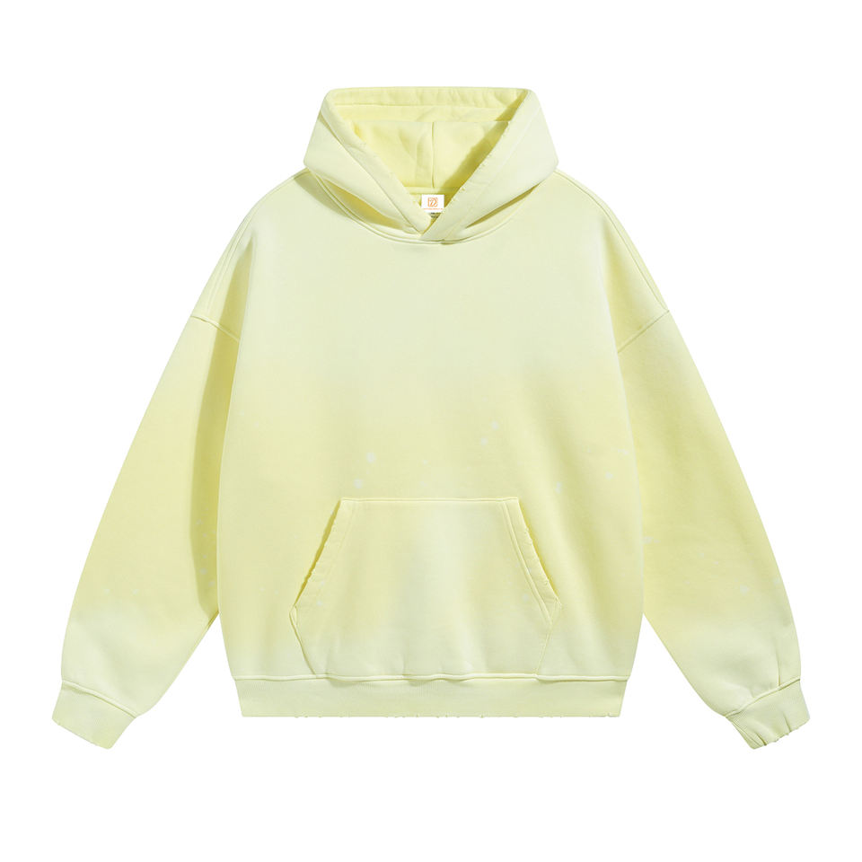 เสื้อมีฮู้ดผ้าฟลีซแบบมีฮู้ดลายฝอยแนววินเทจย้อมสีล้วนสำหรับฤดูหนาว