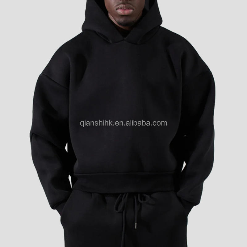 เสื้อฮู้ดแบบสวมหัวโอเวอร์ไซซ์สำหรับผู้ชายเสื้อฮู้ดสีดำโอเวอร์ไซส์ผ้าคอตตอนทำจากผ้าเฟรนช์เทอร์รี่