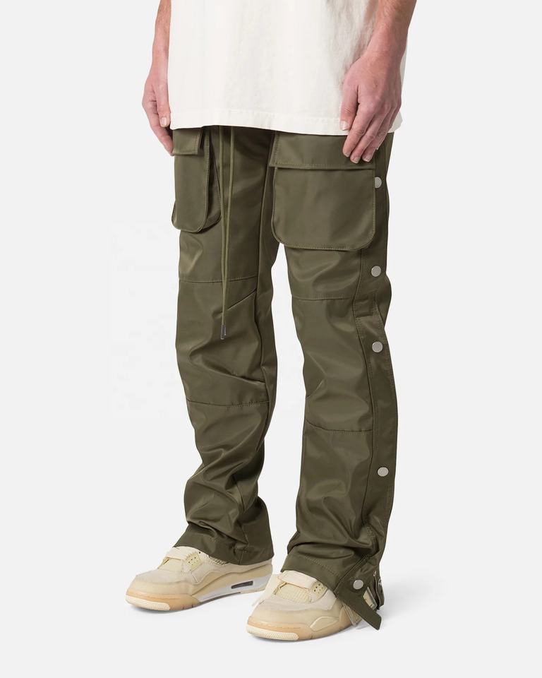 กางเกงวอร์มลำลองผ้าแคนวาสแบบเรียบง่าย น้ำหนักเบา ทรงขาตรงบานเล็กน้อยสำหรับผู้ชาย