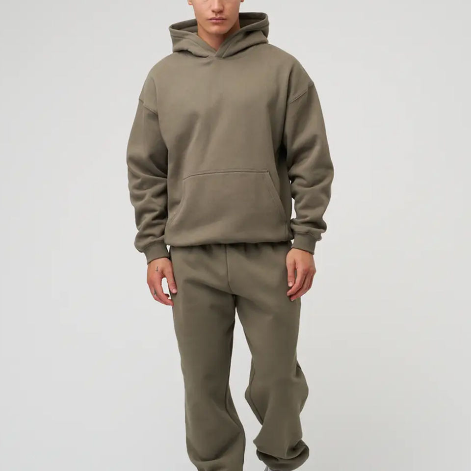 เสื้อฮู้ดดี้โอเวอร์ไซส์ผ้าเฟรนช์เทอร์รี่เนื้อหนัก 450 แกรม แบบเรียบไม่มีลาย สำหรับผู้ชาย มีกระเป๋าแบบจิงโจ้และเชือกผูกปรับได้