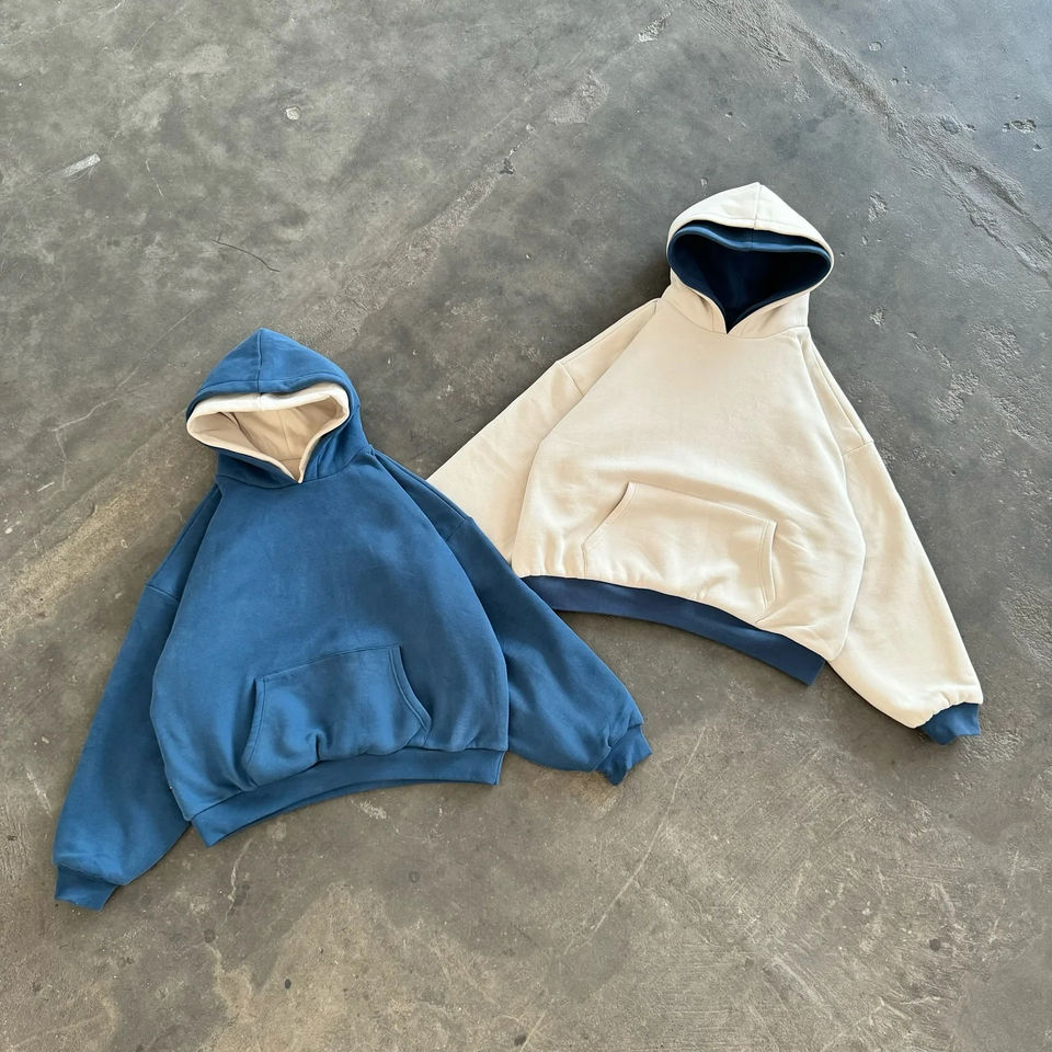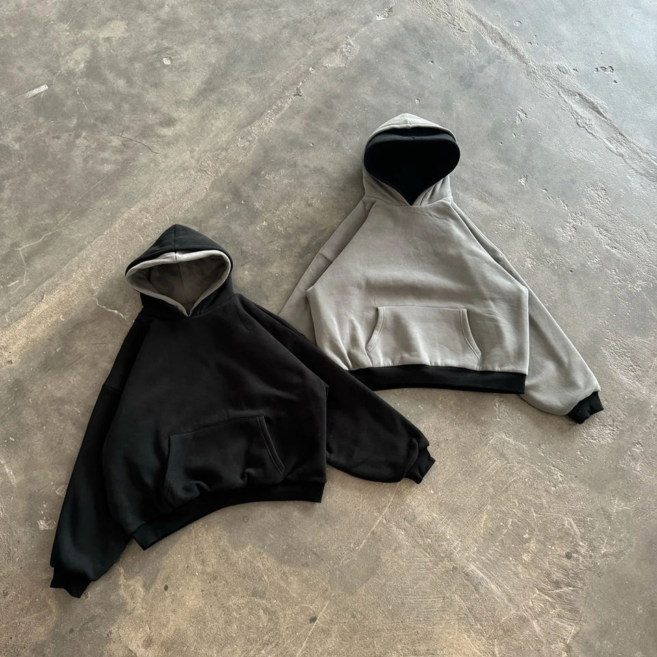 เสื้อฮู้ดแบบสวมหัวแขนปกติของผู้ชายเสื้อสเวตเตอร์ของผู้ชายผ้าฝ้าย100% มีฮู้ดสองชั้นออกแบบได้ตามต้องการ