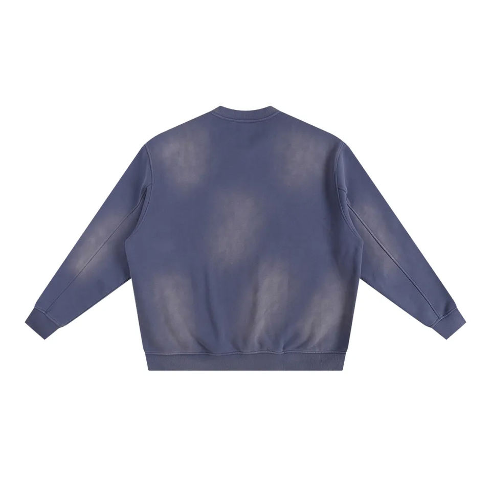 เสื้อสเวตเชิ้ตวินเทจทรงหลวมแบบคัสตอม สีซีดจาง สไตล์วอชด์ คอวี แขนเสื้อแบบดรอปโชว์เดอร์ สำหรับผู้ชาย รับสกรีนลายตามสั่ง