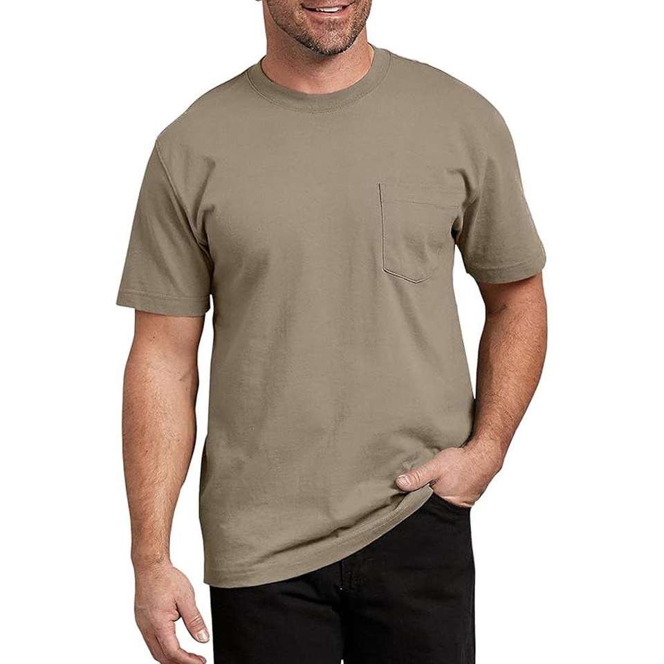 เสื้อยืดเปล่าแบบกำหนดเองสำหรับผู้ชาย ผ้าฝ้ายผสมโพลีเอสเตอร์ เนื้อหนา แขนเสื้อแบบริงเกอร์ คอกลม สวมใส่สบายๆ เสื้อยืดแบบริงเกอร์