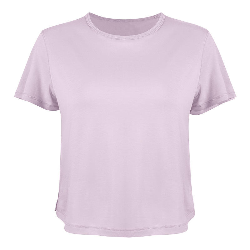 เสื้อยืดเอวลอยคอกลมของผู้หญิงเสื้อยืดเอวลอยสำหรับเล่นกีฬาโยคะระบายอากาศได้ดี