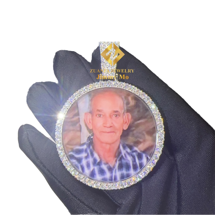 จี้รูปมงกุฎประดับเพชรโมอิสซาไนต์แบบกำหนดเอง สร้อยคอฮิปฮอปทรงกลมชุบทองเงินแท้ 925 สำหรับผู้ชาย