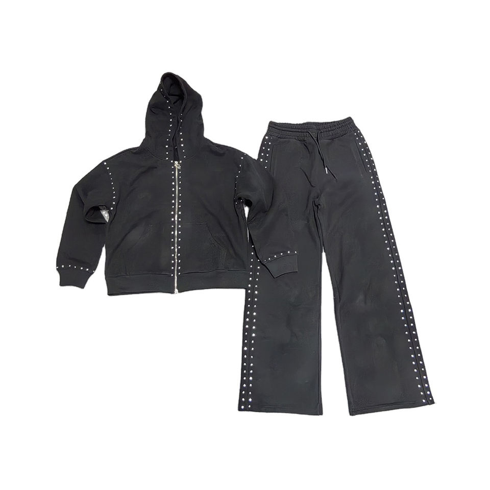Custom Bling Rhinestone Tracksuit Fashion Sportswear Set Logo Printing Embroidery