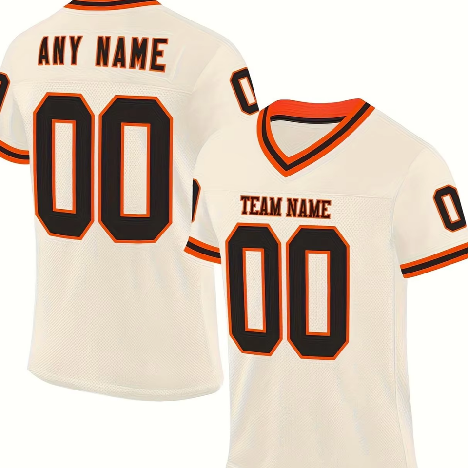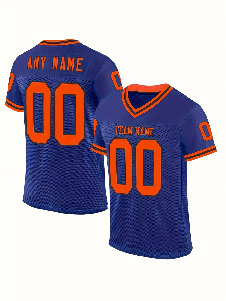 เสื้อฟุตบอลผ้าเมริกันไซส์พิเศษเสื้อฟุตบอลอเมริกันแบบระบายอากาศสีฟ้าส้มออกแบบได้ตามต้องการ