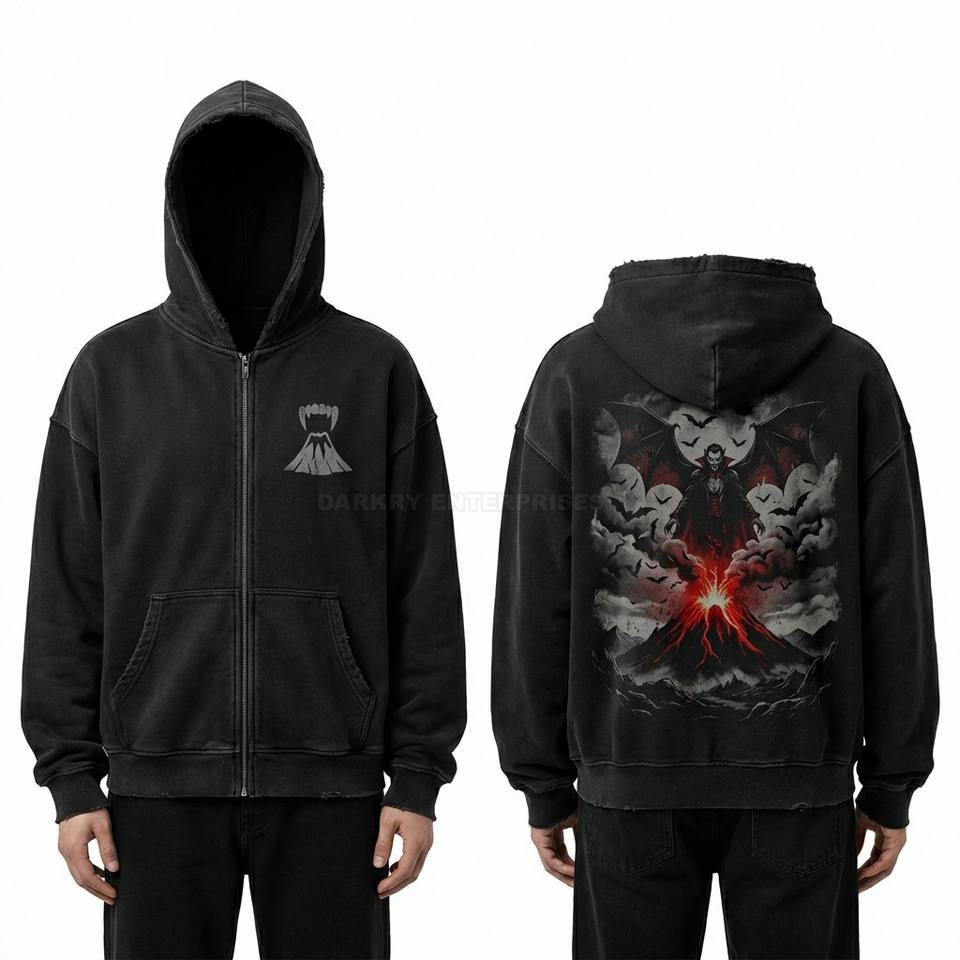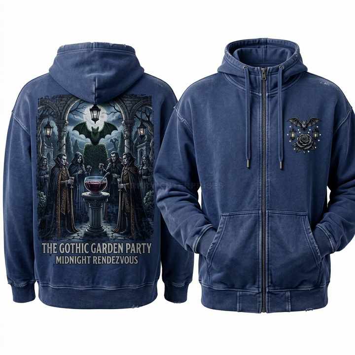 Custom Blue Vintage Wash Zip Up Hoodie Men Heavyweight Gothic Garden Graphic Oversized Streetwear Hoody Manufacturer