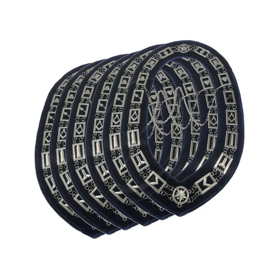 ที่กําหนดเองโลจจ์สีฟ้าชุบเงินคอโซ่ 6 ชิ้นชุดรอยัลสีฟ้ารองรับเสื้อคลุมเสื้อผ้าเสื้อผ้าฝีมือ
