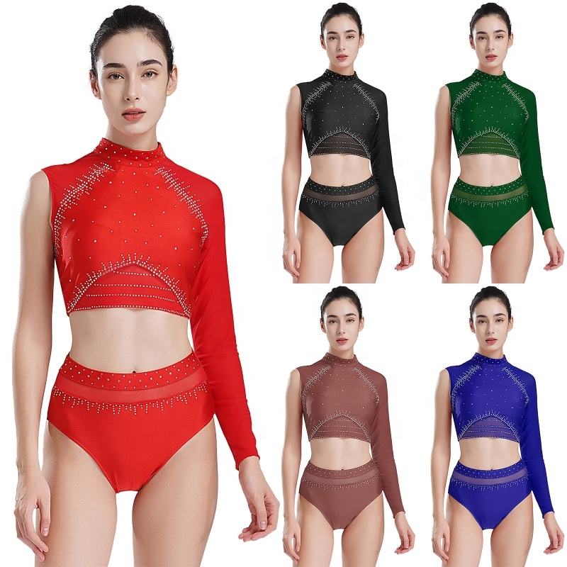 ชุดบอดี้สูทสำหรับผู้หญิงชุดเต้นรำแขนยาวชุดยิมนาสติกชุดเล่นสเก็ตลีลาชุดเต้นรำสำหรับผู้ใหญ่