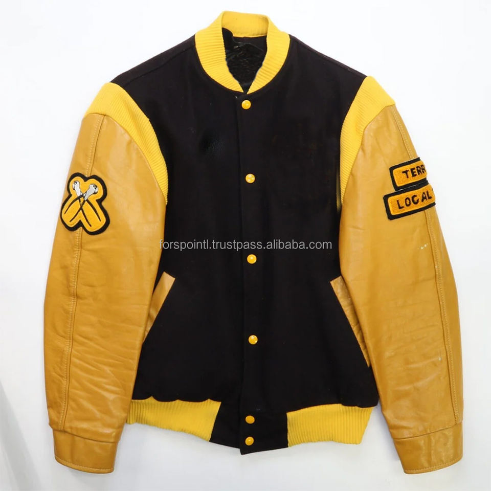 แจ็คเก็ตบอมเบอร์สไตล์สตี้สำหรับผู้ชายเสื้อแจ็กเก็ตทีมเบสบอลขนแกะแขนหนังสำหรับฤดูหนาว