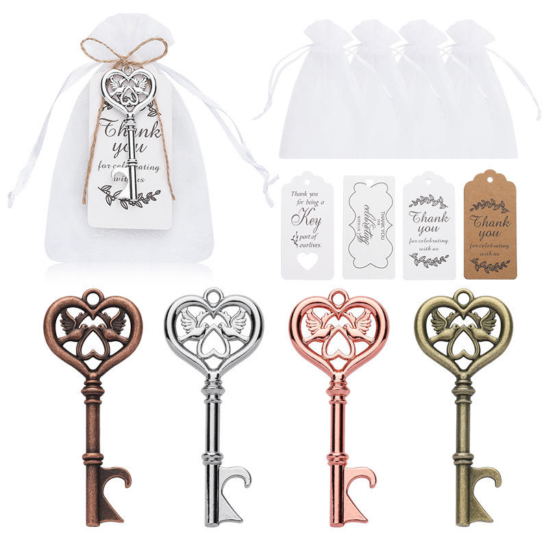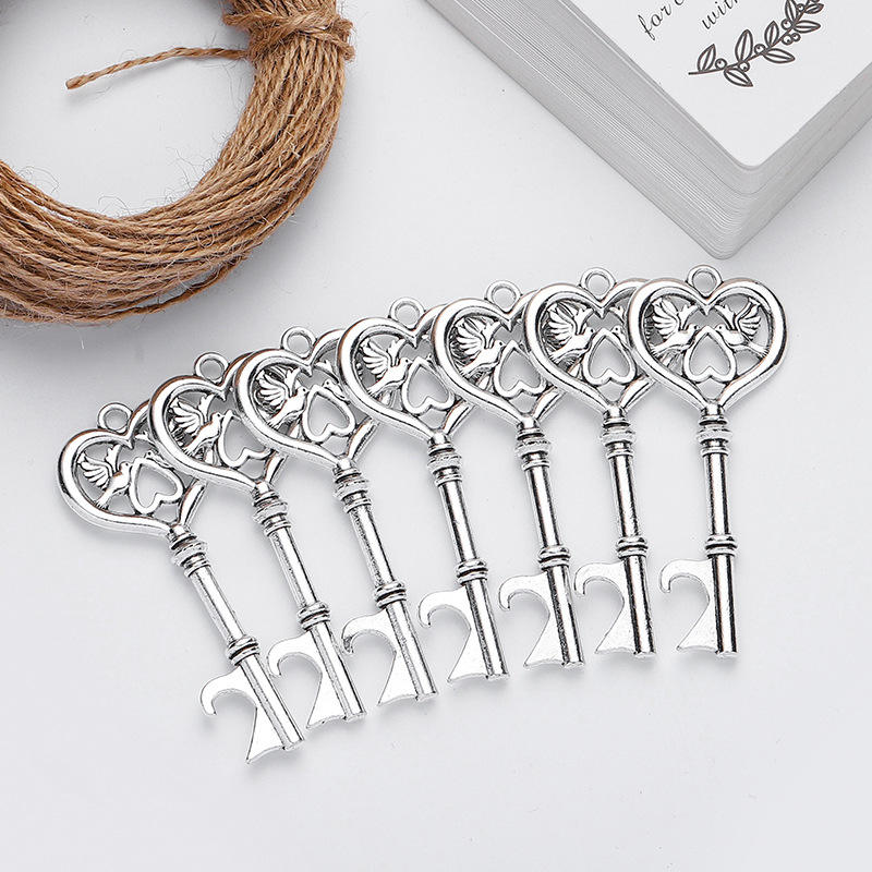 พวงกุญแจที่เปิดขวดรูปหัวใจและนกพิราบแบบกำหนดเองสำหรับงานแต่งงานงานเลี้ยงโปรดปรานสำหรับแขก
