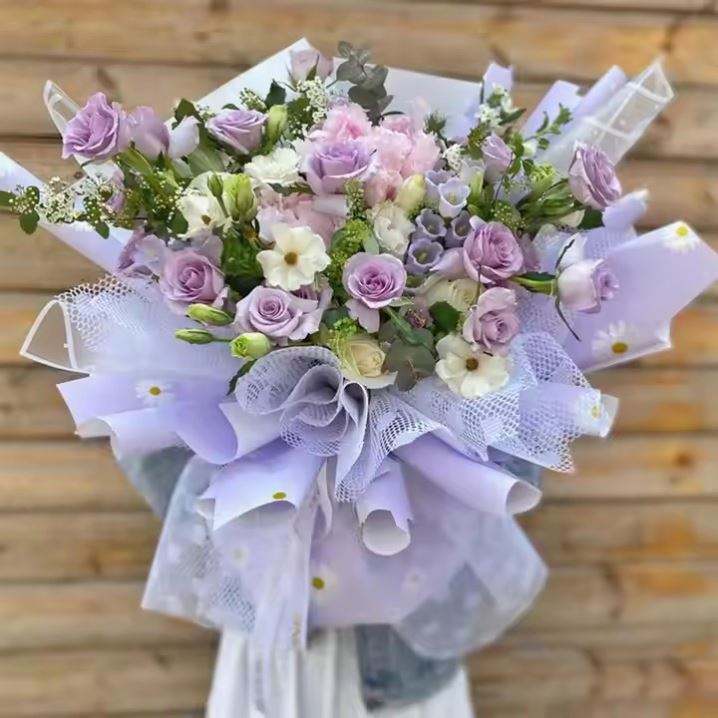 กระดาษห่อดอกไม้แบบกำหนดเองสำหรับบรรจุภัณฑ์ กระดาษห่อดอกไม้สไตล์เกาหลีสีชมพูหรูหรา