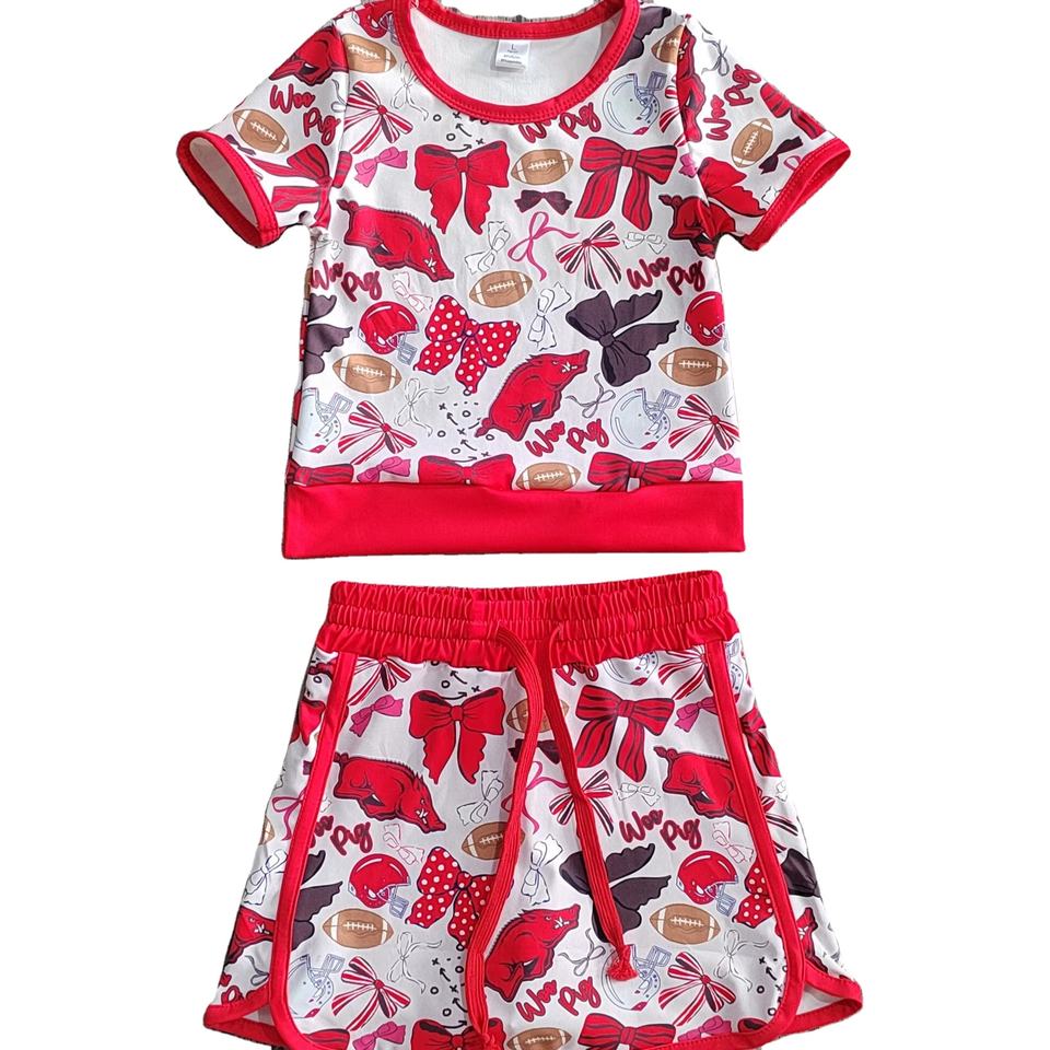 ชุดเซ็ตเสื้อยืดพิมพ์ลายทีมมาสคอตสุดน่ารักสำหรับเด็กผู้หญิง พร้อมกระโปรง/กางเกงขาสั้น 2 ชิ้น ผ้าฝ้ายผสมสแปนเด็กซ์ ระบายอากาศได้ดี