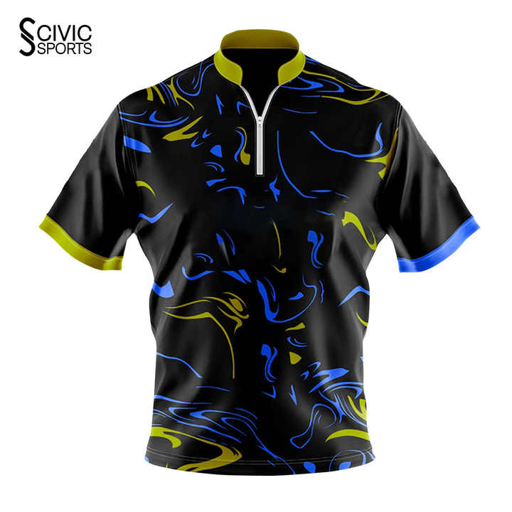 เสื้อโบว์ลิ่งแบบกำหนดเองราคาถูก เสื้อทีมโบว์ลิ่งพิมพ์ลายแบบ Sublimation รับทำโลโก้ OEM เสื้อบิลเลียดและดาร์ทแบบซิป ¼