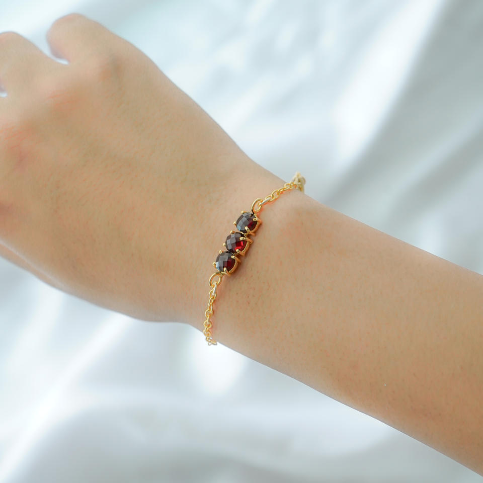 สร้อยข้อมือโกเมนกำไลข้อมือ925เงินสเตอร์ลิงสร้อยข้อมือพลอยสามง่ามออกแบบได้ตามต้องการ