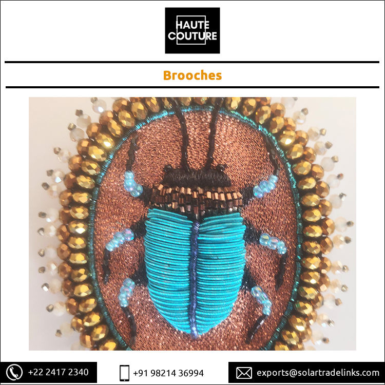 เข็มกลัดทำจากทองแดง Kasab,เข็มกลัดรูปตัวด้วงทำจากลูกปัดมิยูกิปักด้วยมือแบรนด์ตามสั่ง