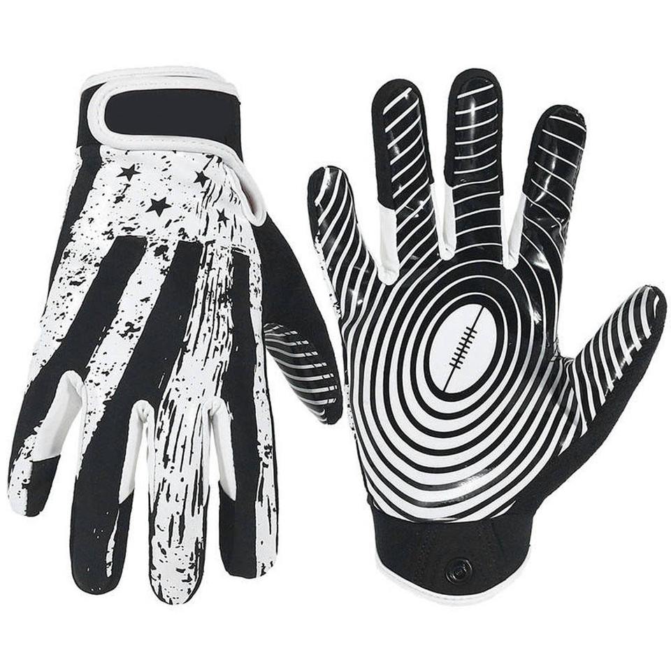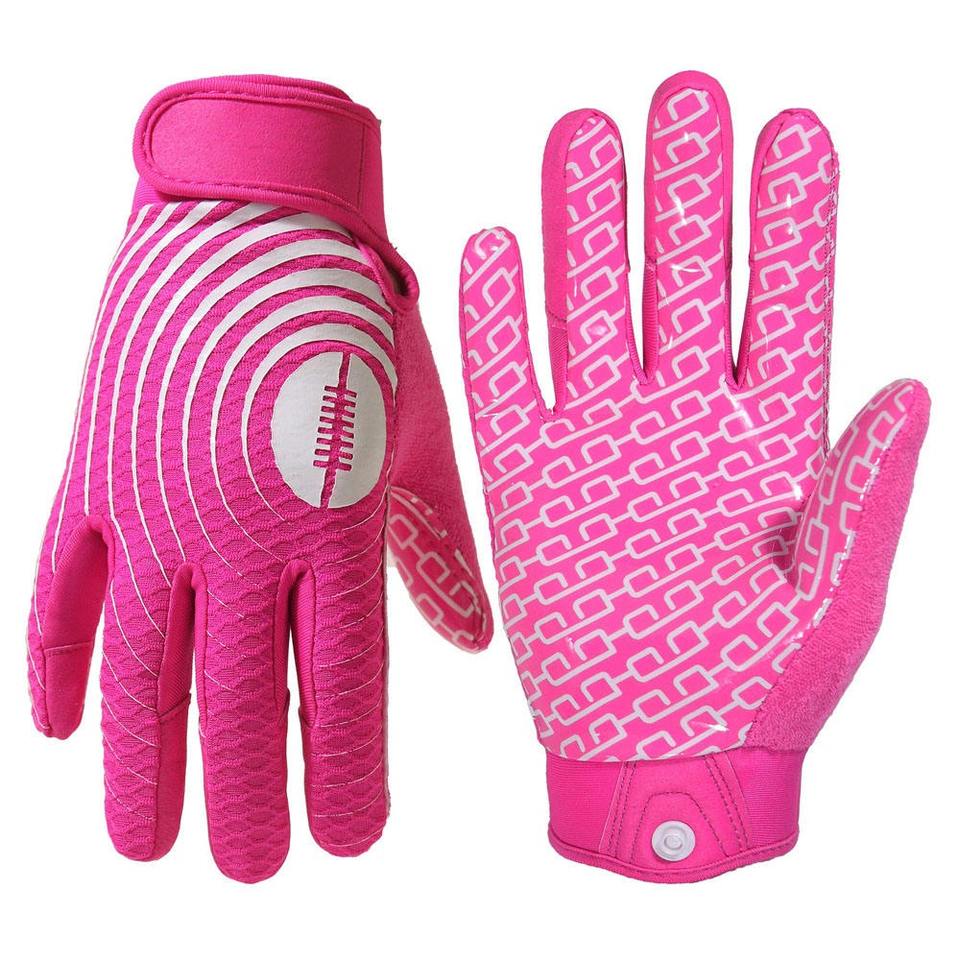 ถุงมือฟุตบอลหนังสังเคราะห์สีทองเคลือบซิลิโคนสำหรับเล่นกีฬาถุงมืออเมริกันออกแบบได้ตามต้องการ