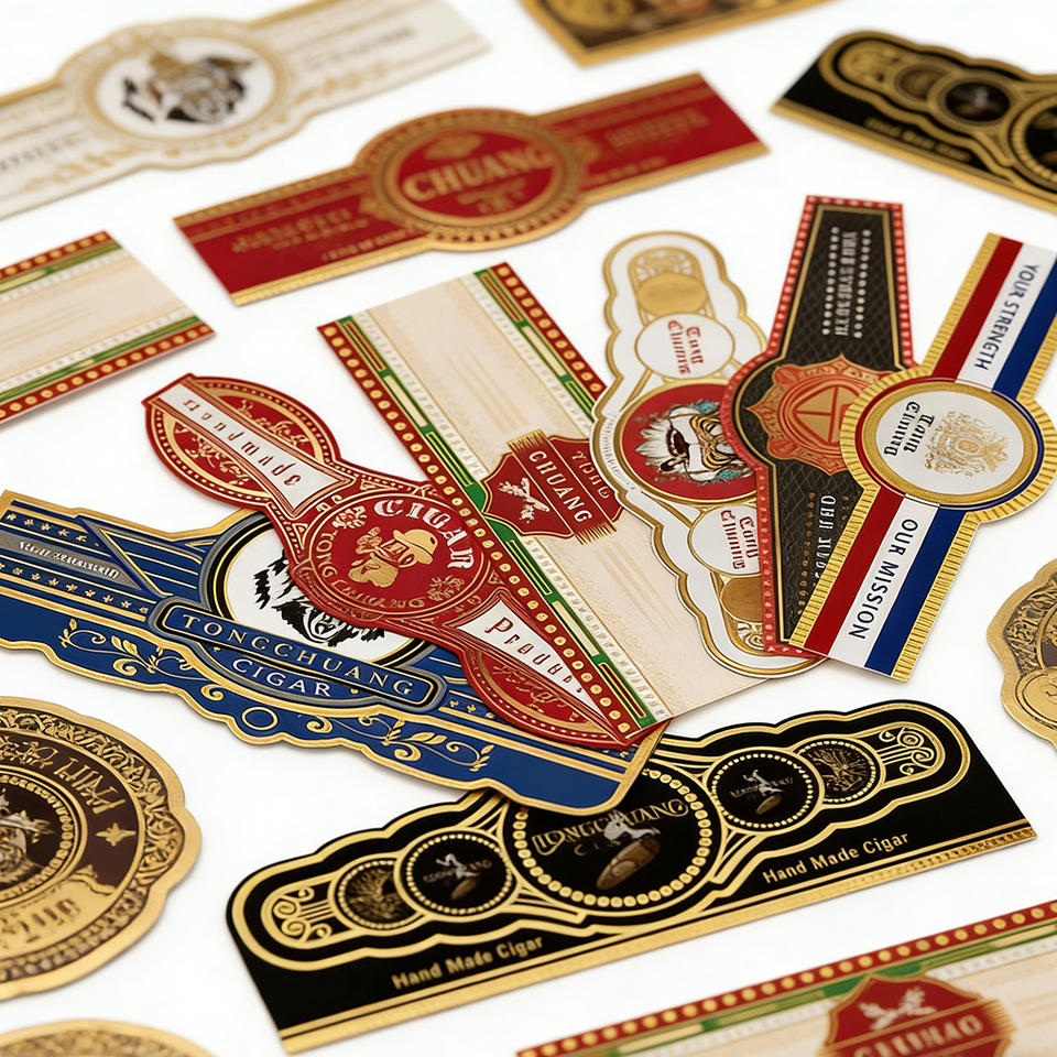 ฉลากวงแหวนซิการ์โลโก้แบรนด์แบบกำหนดเอง พิมพ์ UV โฮโลแกรม แถบกาวขูดลอกได้ เป็นมิตรกับสิ่งแวดล้อม กันน้ำ บรรจุภัณฑ์ซิการ์