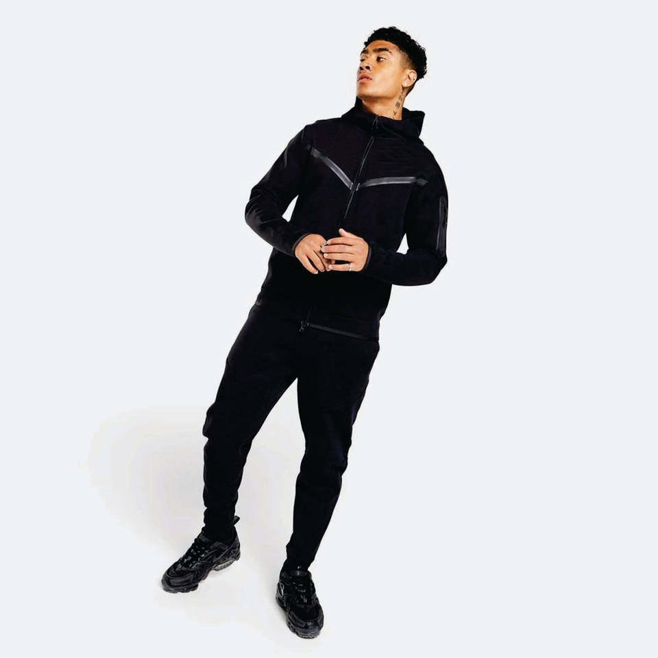 ชุดวอร์มเทคฟลีซผู้ชาย แบรนด์สั่งทำพิเศษ เป็นมิตรกับสิ่งแวดล้อม ผ้าฝ้าย 69% โพลีเอสเตอร์ 31% สีเขียวเข้ม ซิปยาวเต็มตัว เสื้อฮู้ดดี้และกางเกงจ็อกเกอร์สำหรับผู้ชาย