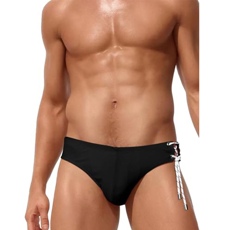 กางเกงว่ายน้ำเซ็กซี่สีดำของเด็กชายสายรัดปรับได้กางเกงว่ายน้ำแบรนด์ออกแบบโลโก้ได้