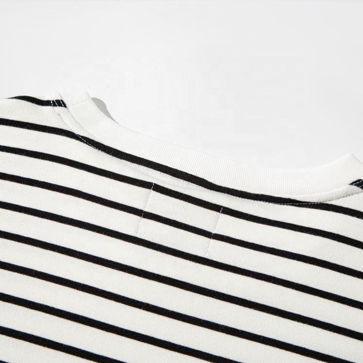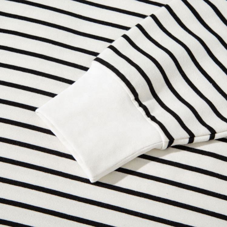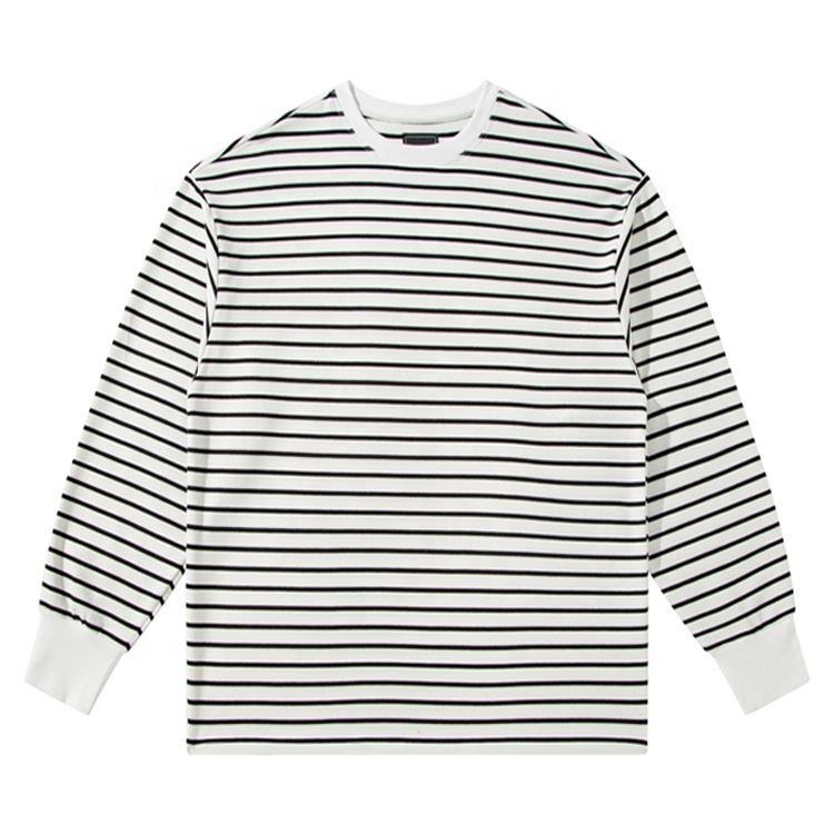 เสื้อยืดคอกลมแขนยาวสำหรับผู้หญิงเสื้อยืดลายทางสีขาวคอกลมออกแบบโลโก้ได้ตามต้องการ