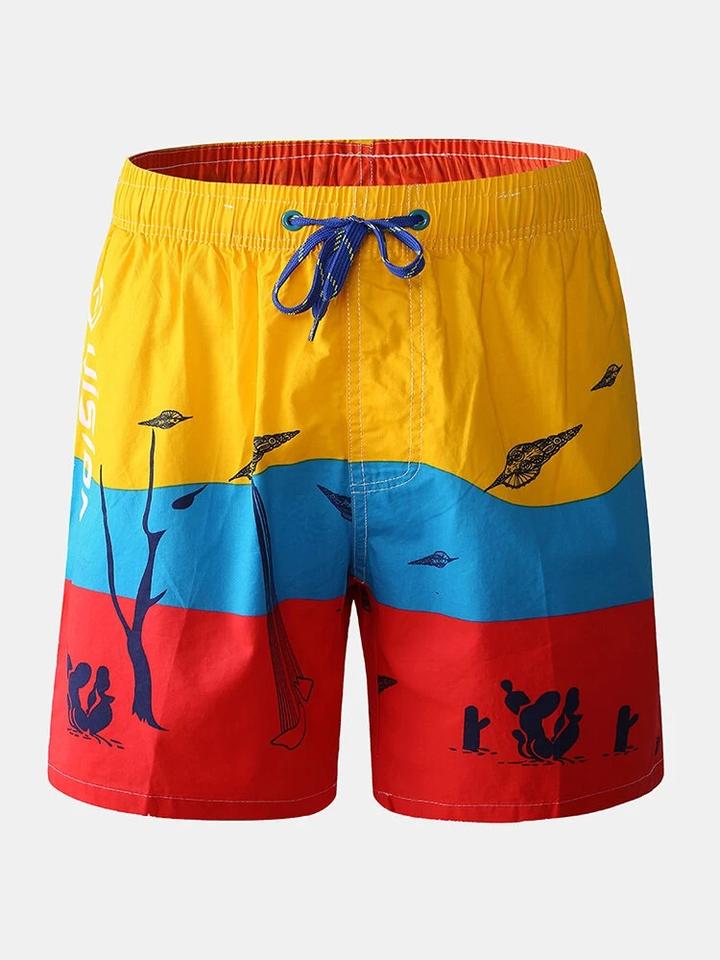 กางเกงขาสั้นสำหรับวิ่งออกกำลังกายพิมพ์ลายนกดอกไม้มีเชือกผูกเป็นมิตรกับสิ่งแวดล้อมกันน้ำระบายอากาศได้ดี