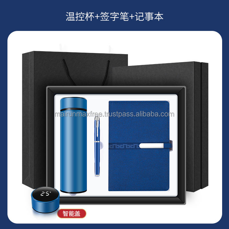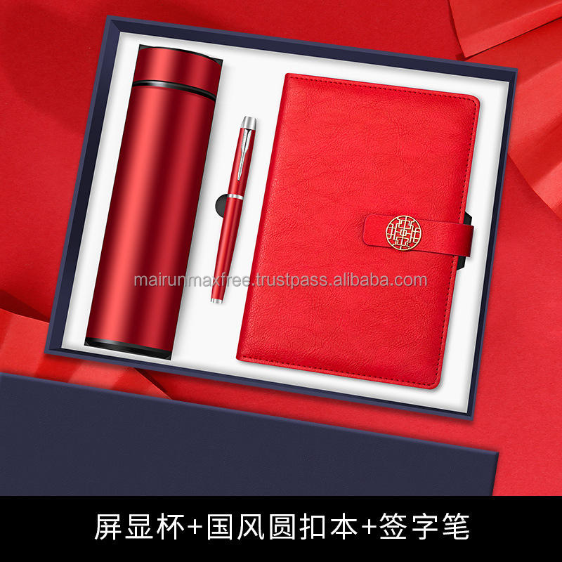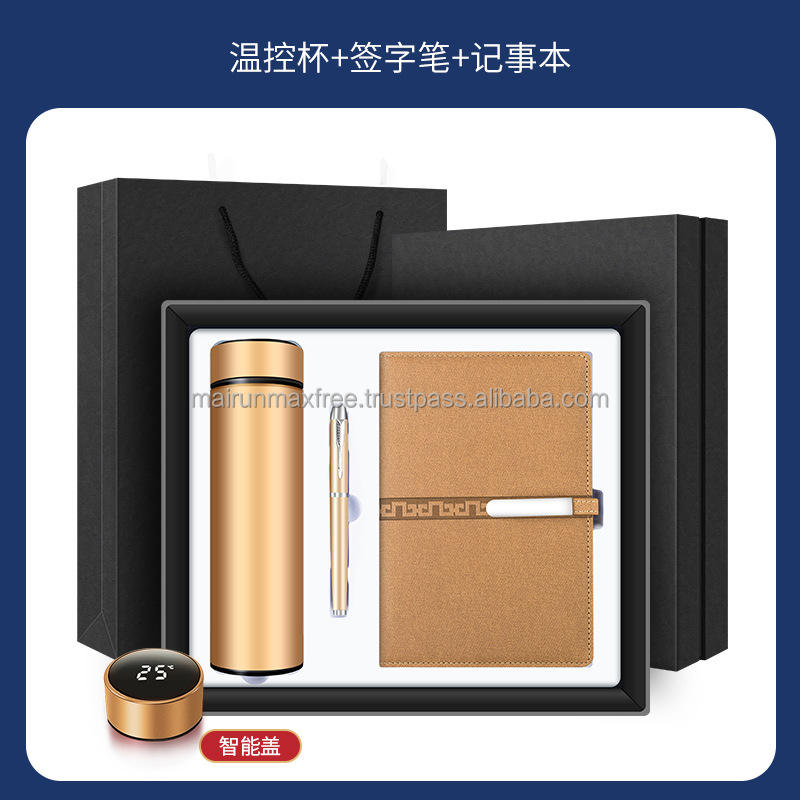 Custom Brand New Promotional Gift Sets Items 450ml Vacuum Flask+A5 Plain Notebook+black Ink Metal Pen Gift Set Luxury