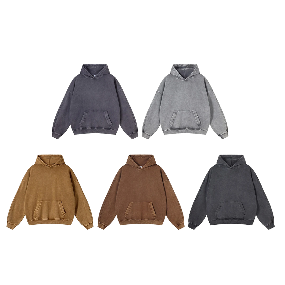 เสื้อสเวตเชิ้ต/เสื้อฮู้ดดี้ทรงโอเวอร์ไซส์ยี่ห้อสั่งทำพิเศษ ล้างสีแบบแอซิดวอช คุณภาพสูง ผ้าฝ้าย 100% ดีไซน์วินเทจ ล้างทำเก่า สำหรับผู้ชาย ฤดูหนาว น้ำหนัก 460 กรัม
