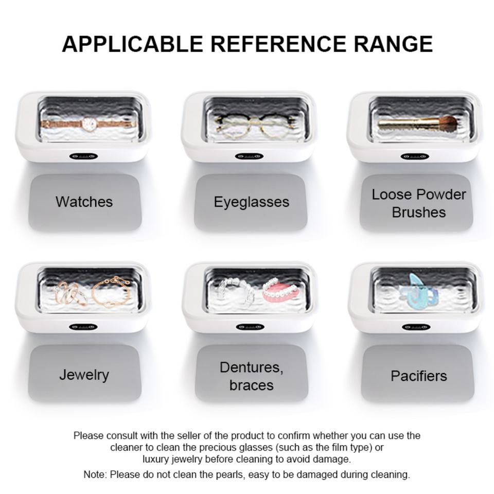 เครื่องทำความสะอาดอัลตราโซนิกแบบพกพา ยี่ห้อ Custom Brand สำหรับทำความสะอาดเครื่องประดับ นาฬิกา แว่นตา