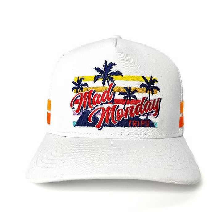 หมวกแก๊ปแบรนด์สั่งทำพิเศษ ลายทางด้านข้าง สไตล์ฤดูร้อน ลายปักทรอปิคอล หมวกแก๊ปทรงทรัคเกอร์ ผู้ผลิตหมวก VN หมวกกันแดดกลางแจ้ง