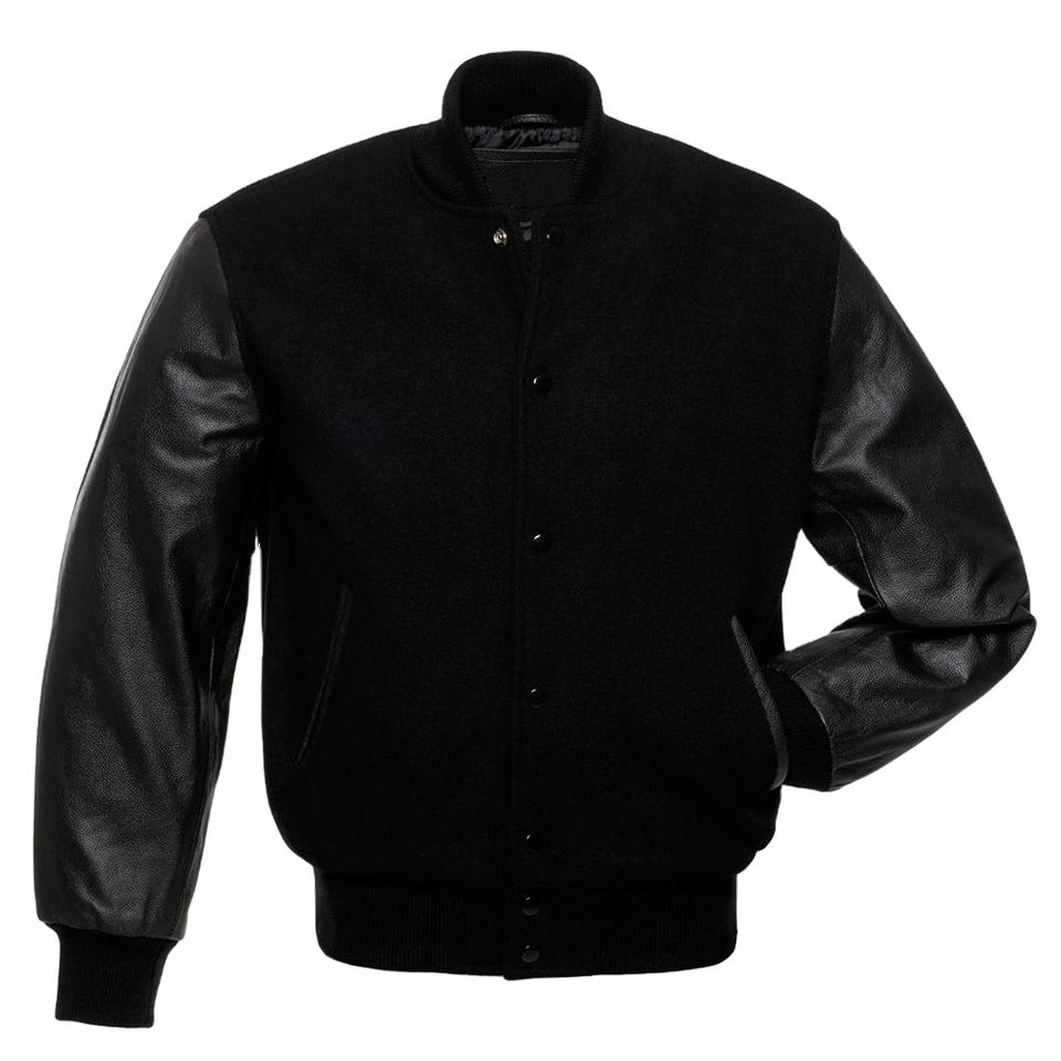 แจ็คเก็ตนักเบสบอลแขนเสื้อหนังสีดำมีสไตล์สไตล์และสีน้ำเงินเข้มขนาด XL