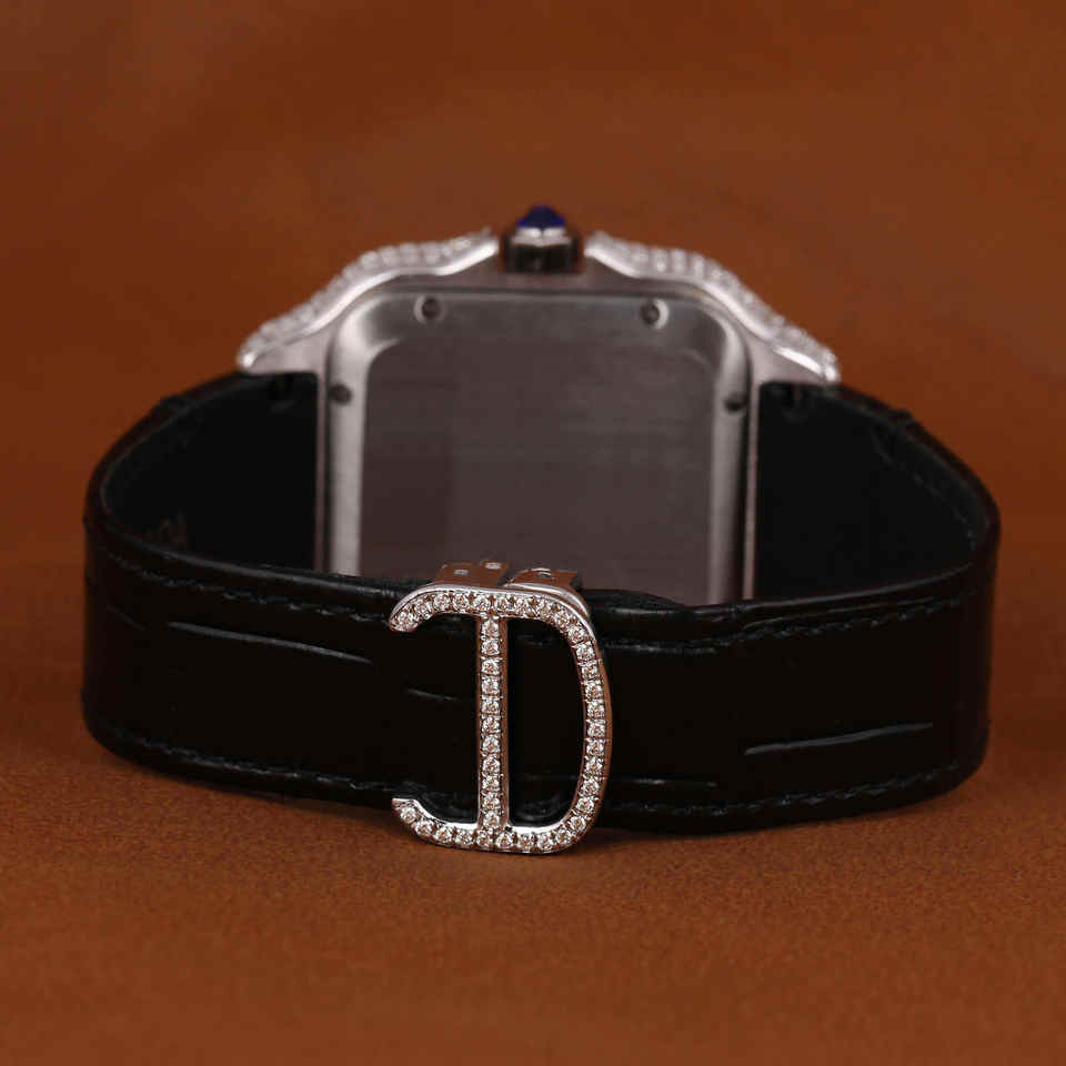 นาฬิกาแบรนด์สั่งทำพิเศษ ประดับเพชรโมอิสซาไนต์ ตัวเรือนทองเหลืองชุบทองคำขาว หน้าปัดกระจก สำหรับทั้งชายและหญิง ราคาขายส่ง ผู้จัดจำหน่ายจากอินเดีย เครื่องประดับแฟชั่นสำหรับธุรกิจ