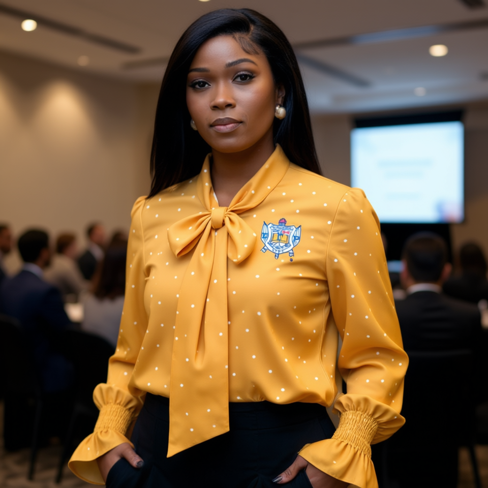 เสื้อเบลาส์ลำลองผู้หญิงแบรนด์สั่งทำพิเศษ สีทองล้วน แขนยาว ผูกโบว์ด้านหน้า คอวี ผ้าฝ้าย 100% ทรงเข้ารูป สำหรับใส่ในชีวิตประจำวัน