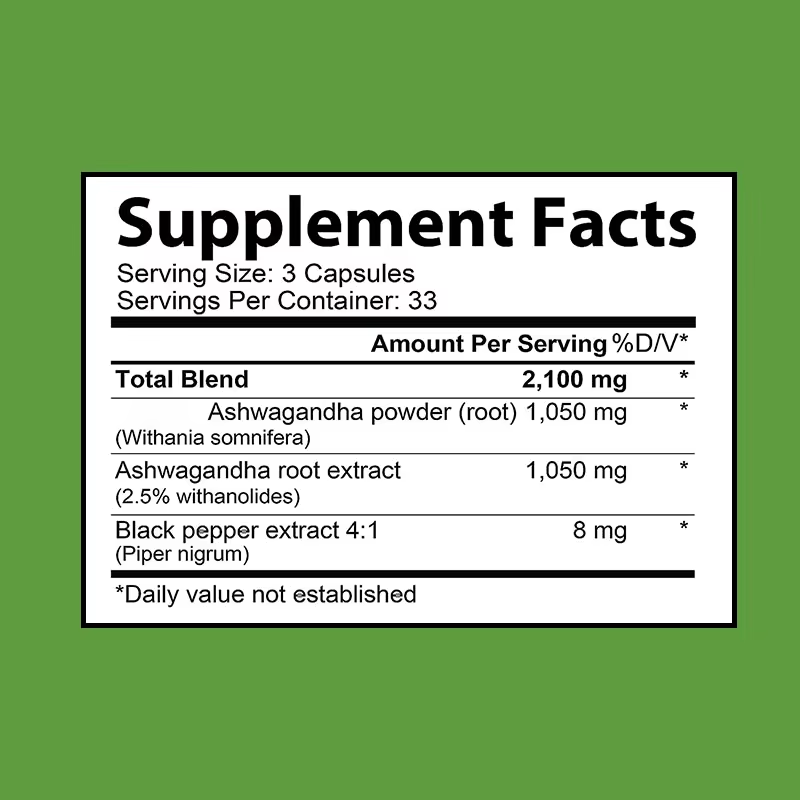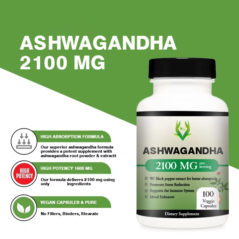 Custom Branded Ashwagandha Capsules Extra Strength 2100mg Stress Relief Energy Support boost Energy Release Emotional Balance
