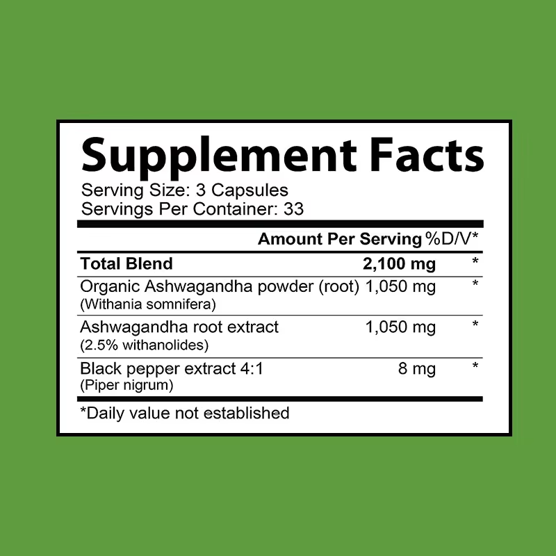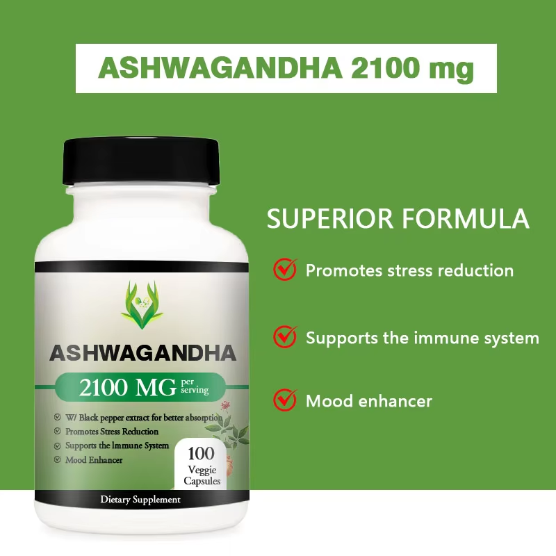 แคปซูลอัศวกันธาแบรนด์เฉพาะ ความเข้มข้นพิเศษ 2100 มก. บรรเทาความเครียด เสริมพลังงาน เพิ่มการปลดปล่อยพลังงาน ปรับสมดุลอารมณ์