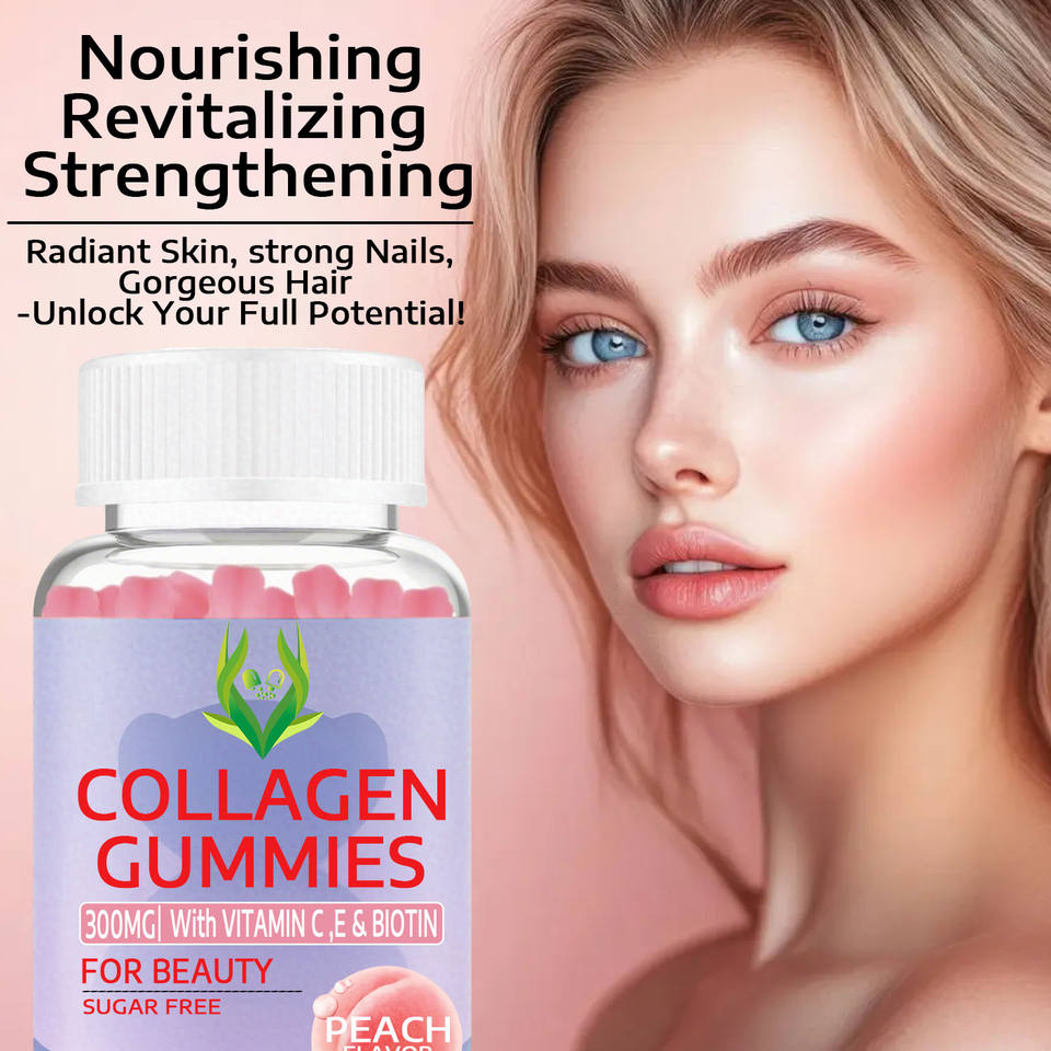 เยลลี่คอลลาเจนแบรนด์ตามสั่งพร้อมวิตามินซีอีไบโอตินเสริมความงามสำหรับบำรุงผิวเล็บเพื่อสุขภาพผมผิวเล็บรสพีช60เยลลี่มังสวิรัติ