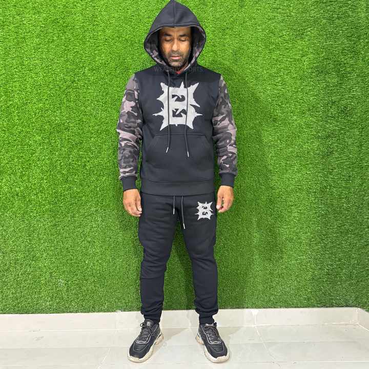 ชุดวอร์มผู้ชายแบบมีฮู้ด แบรนด์สั่งทำพิเศษ ทรงปกติ ผ้าเนื้อแน่น พร้อมกางเกงวอร์มขาบานและเสื้อฮู้ดเข้าชุด