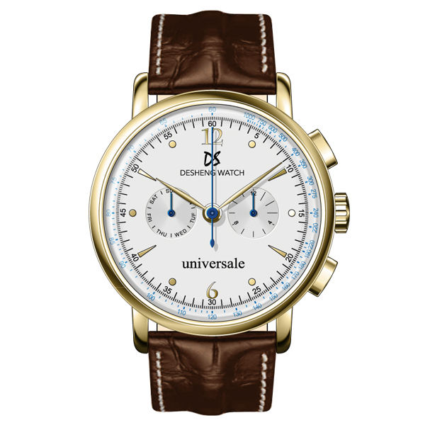 ลักษณะ:โครโนกราฟ, ปฏิทินที่สมบูรณ์, วัน / วัน, ข้างแรม, กันน้ำ, กันน้ำ, มือส่องสว่าง, การเคลื่อนไหวที่มองเห็นได้