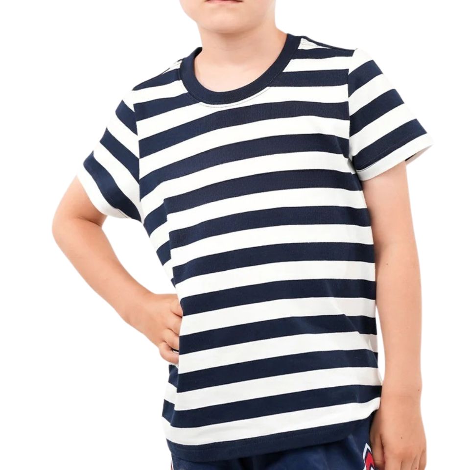 Custom Branding 100% Cotton Soft Touch T-shirt Kids Regular Fit Navy White T-shirt Kids Stripe Crew Neck Short Sleeve T-shirt