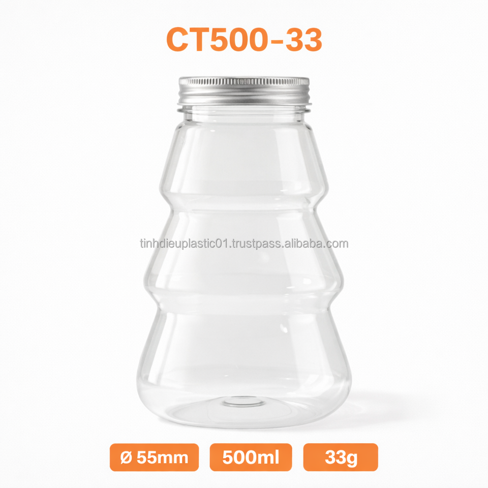 รับผลิตแบรนด์ตามสั่ง ขวด PET ใส 500 มล. รุ่น CT500-33 ฝาอลูมิเนียม 55 มม. พร้อมภาชนะฟอยล์