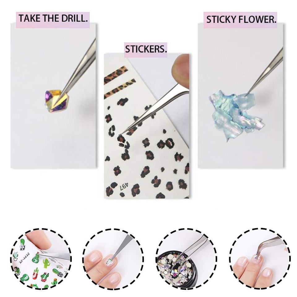 ชุดแหนบทำเล็บทำจากอะคริลิคสแตนเลสสำหรับการเลือกอุปกรณ์ทำเล็บอุปกรณ์ต่อขนตาใช้งานได้หลากหลาย