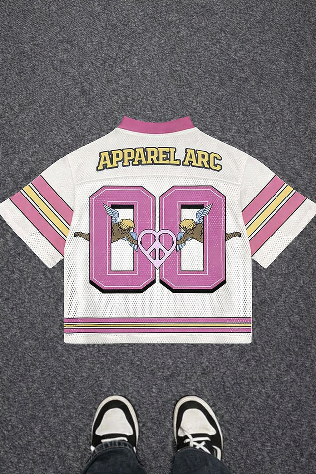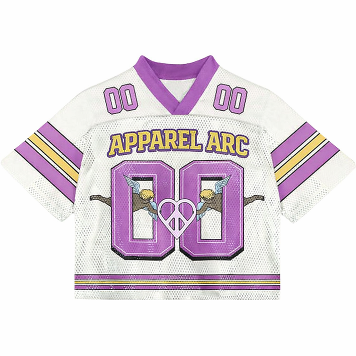 เสื้อฟุตบอลตาข่ายแบรนด์สั่งทำพิเศษ ทรงครอปท็อป OEM ระบายอากาศได้ดี ผลิตจากโพลีเอสเตอร์ เสื้อผ้ากีฬาแนวสตรีทแขนสั้น