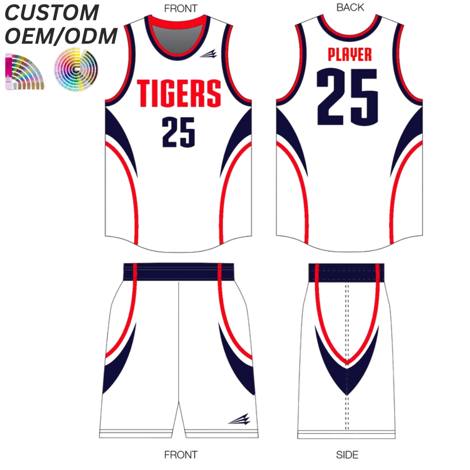 ชุดบาสเก็ตบอลผ้าโพลีเอสเตอร์ 100% ระบายอากาศได้ดี พิมพ์ลายตามสั่ง รองรับ OEM ODM สำหรับการผลิตขายส่ง