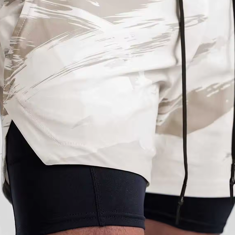 กางเกงขาสั้นตาข่ายสำหรับผู้ชายผ้าโพลีเอสเตอร์แบบมีเชือกรูดมีสองชั้น5นิ้วพิมพ์ซับลิเมชัน100% ตามสั่ง