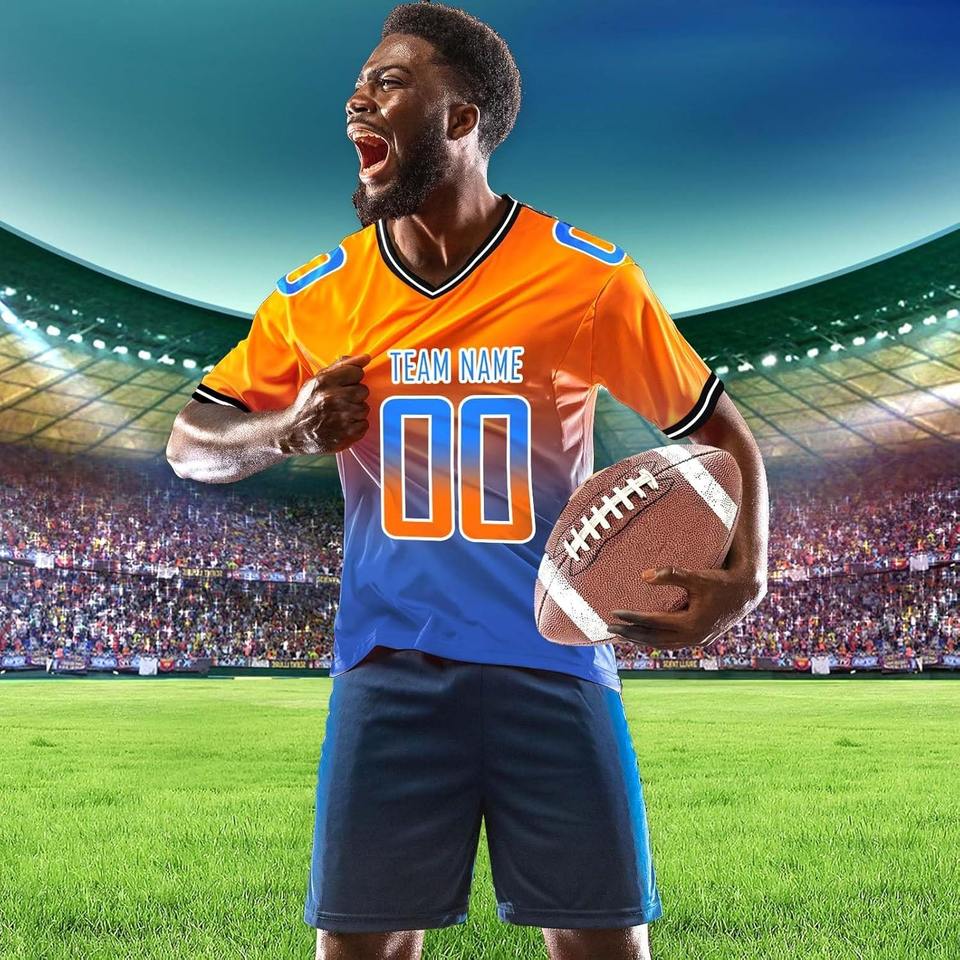 เสื้อฟุตบอลอเมริกันแบบสั่งทำพิเศษ ระบายอากาศได้ดี ป้องกันแบคทีเรีย แขนสั้น ผ้าตาข่าย ชุดแข่งขัน ไซส์ XL ขนาดใหญ่พิเศษ แบบรีดร้อน