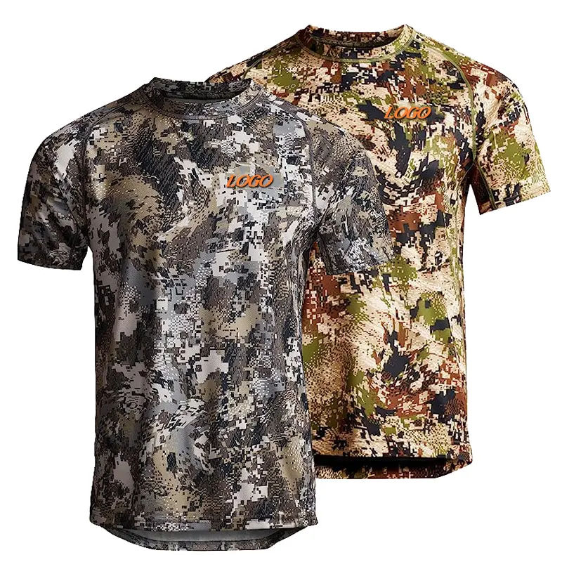 ผู้ผลิตเสื้อผ้าแคนวาสลายพรางระบายอากาศได้ดี รับผลิตตามสั่ง MOQ ต่ำ พิมพ์ลายแบบระเหิด สีตามสั่ง ตัวเลือก OEM แห้งเร็ว