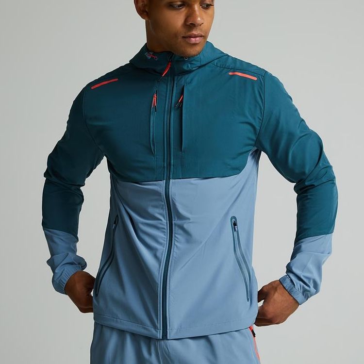 เสื้อแจ็คเก็ตผ้าแคนวาสกันลมน้ำหนักเบาระบายอากาศได้ดีสำหรับผู้ชาย พร้อมปกตั้งและฮู้ดปรับได้ เหมาะสำหรับกีฬากลางแจ้ง