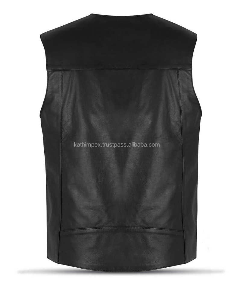 เสื้อกั๊กหนังสีดำสำหรับผู้ชายระบายอากาศได้แบบกำหนดเองคอปกคอวีมีกระเป๋าด้านหน้า2กระเป๋าเครื่องแต่งกายลำลองกลางแจ้งฤดูร้อน